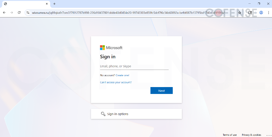 When the victim scans the code, they are redirected to a fake human check page at ministry.sharedfilescorps.com/interior/$, where they have to click a box to prove they are not a robot. When done, they are sent to a fake Microsoft login page, which looks just like the real one, but it is actually a trap used to steal their login credentials.