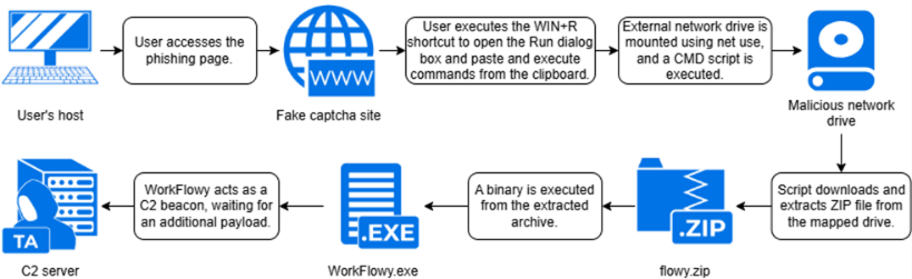 A new ClickFix scam tricks Windows users into running hidden commands that map hacker-controlled drives and load malware through trusted apps.